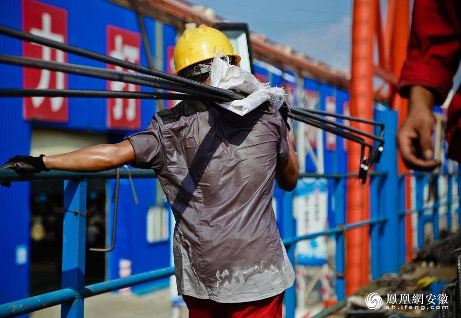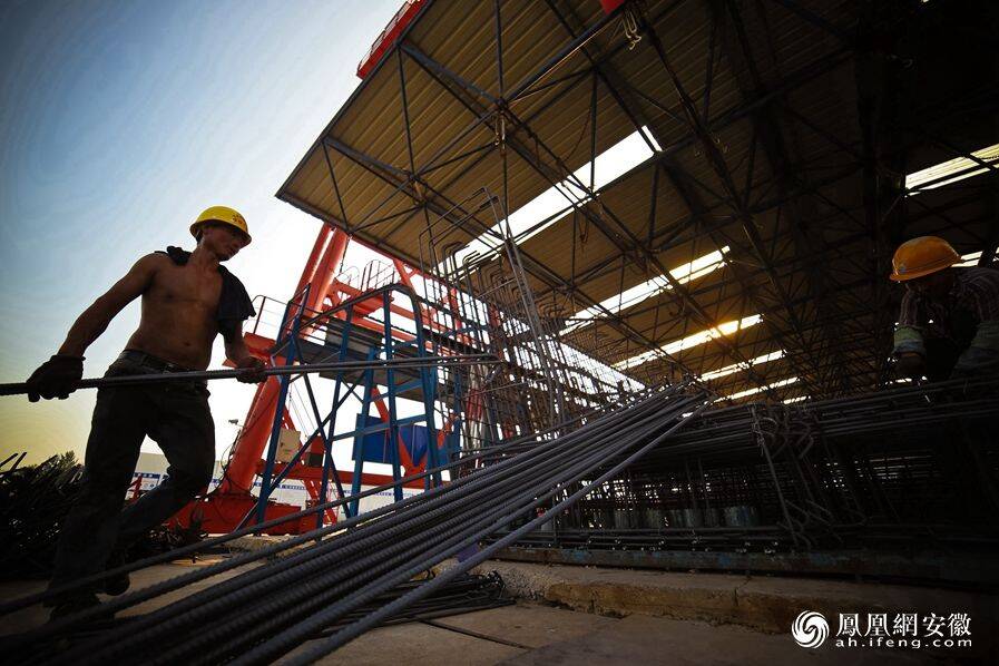 【高铁制梁工】2017年,对于凤凰网安徽特约摄影师庞诚来说,是平淡且充实的一年,这一年中,他用相机记录着生活点滴,记录着每一个感动瞬间。在中铁十局集团三建阜阳制梁场,沙子、水泥、钢筋运进工厂,经过道道工序,制成成型的高铁预制箱梁。一榀完整箱梁重达700多吨,它的成型需要钢筋工、模板工、混凝土工、张拉工四大工种的依次加工,辛勤付出。虽然气温不高,但工人们依然汗流浃背。