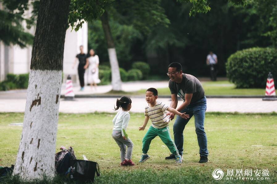 图为市民在安徽大学龙河校区内游玩。