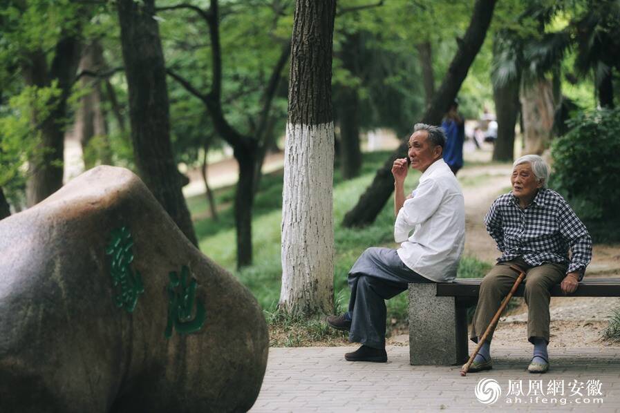 图为市民在安徽大学龙河校区鹅池边游玩。